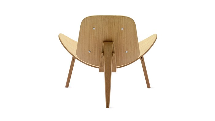 诞生于1969年,为设计大师wegner为Carl Hansen & Son所设计的椅子之一,,为胶合板优点发挥到极致的设计款,全身上下只有三个组件各自一体成形,因而得名三角贝壳椅,为市场上历久不衰的经典之作,在技术上运用高难度的木材加弯,以呈现出完美的曲线造型,让人只要见过一次,就会印象深刻。