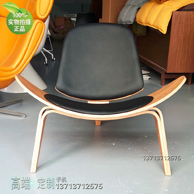 实物三脚三角三叉贝壳实木椅 汉斯·韦格纳 创意大师 样品房外星人北欧家具 经典